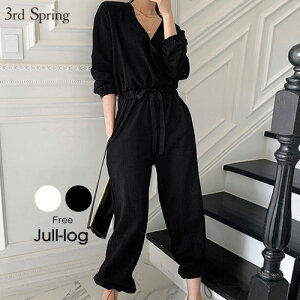 JULL-LOG(ジュローグ)カジュアルトレーナージャンプスーツ【3/25up_go】韓国 韓国ファッション オールインワン サロペット セットアップ スウェット ジャージ らくちん ルームウェアナンニング レディース【5】※メール便不可