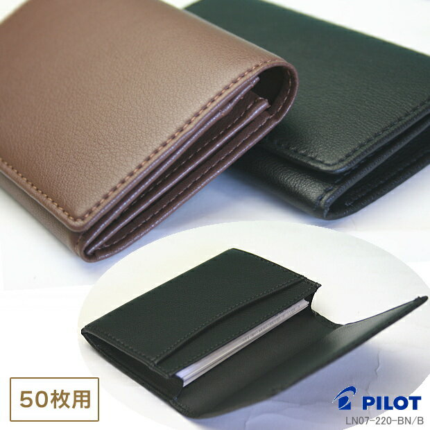 ビジネスマンへのプレゼントにもお薦めです 品名 Leather Collection 名刺入れ 50枚用 品番 LN07-220-B 黒/ LN07-220-BN 茶 サイズ 約)110×77×厚さ13mm 重さ:約18g 仕様 材質:牛革(型押し)、牛革(型押し)、ポリウレタン(内生地)、2ツ折り型名刺入れ マチ付ポケット(名刺約50枚対応)、カードポケット×2 メーカー (株)パイロットコーポレーション PILOT ※他のモール及び店頭売りと在庫を併用しておりますのでご注文後でも在庫切れの場合がございますのであらかじめご了承下さい。